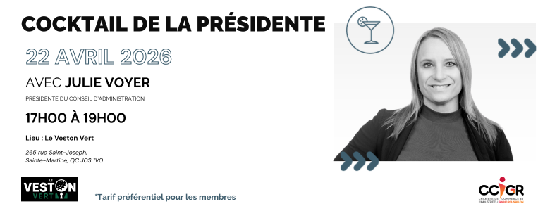 Rencontrez Julie Voyer, présidente du conseil d’administration, découvrez les projets qui façonnent l’avenir économique de notre région et profitez d’un moment privilégié pour élargir votre réseau professionnel.