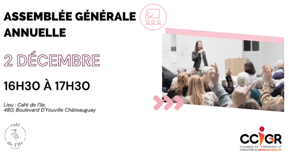 Par la présente, vous êtes cordialement invités à participer à l’assemblée générale annuelle des membres de la Chambre de Commerce et d’Industrie du Grand Roussillon pour le terme 2024-2025.